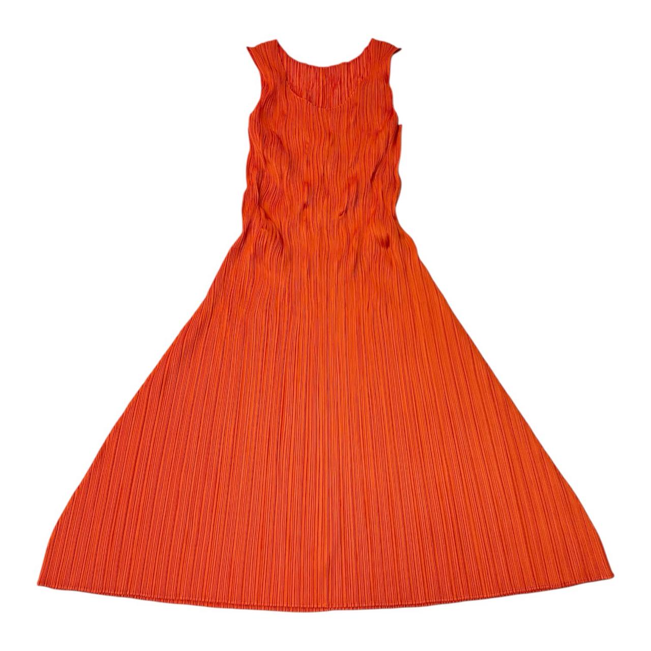 ISSEY MIYAKE イッセイミヤケ PLEATS PLEASE ISSEY ノースリーブ ひざ丈 ワンピース ドレス PP11-JH582 オレンジ系 サイズ4 レディース
